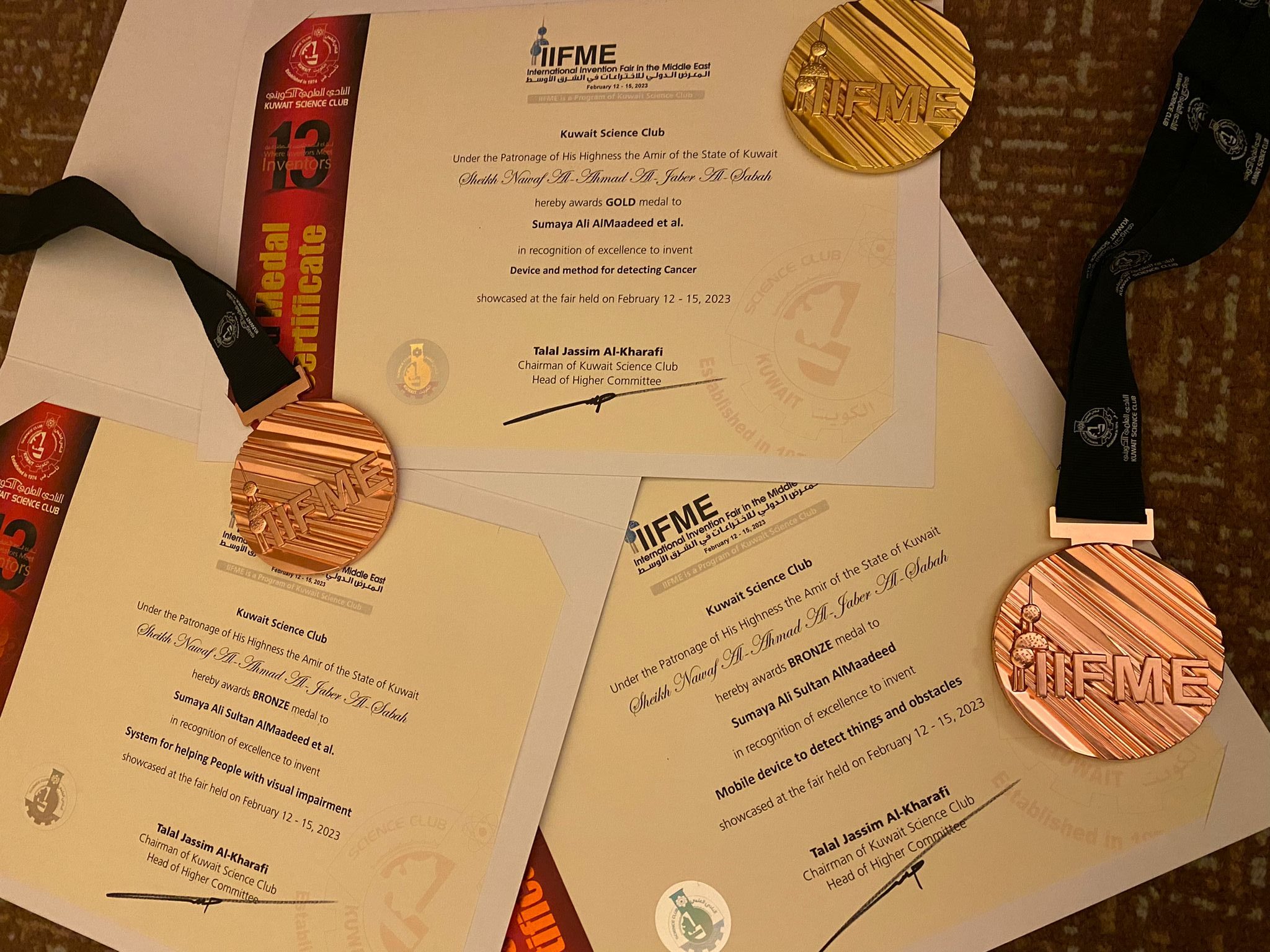 The fair was organized from the 12th to 15th of February 2023 by Kuwait Science Club under the Patronage of His Highness, the Emir of Kuwait, Sheikh Sabah Al-Ahmad Al-Jaber Al-Sabah, and in collaboration the International Federation of Inventors’ Associations (IFIA), World Intellectual Property Organization (WIPO), UNESCO, and the International Exhibition of Inventions of Geneva. This unique convention in the Middle East was received with great importance locally, regionally, and internationally. It highlighted the inventions, innovations, and creativity of youths and universities.